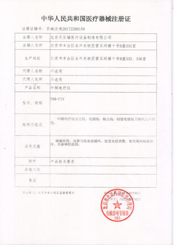• 我公司的T99-H型中頻電療儀2019年-06月-20日